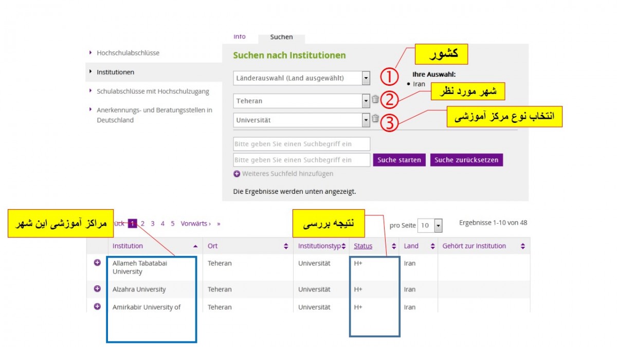 جهت ارزیابی مدارک تحصیلی خود ابتدا باید دانشگاه یا موسسه آموزشی که در آن تحصیل کرده اید را در سایت آنابین بررسی کنید. برای این منظور: